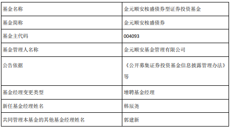 中国经济网北京11月28日讯今日,金元顺安基金公告,金元顺安桉盛债券增聘韩辰尧。